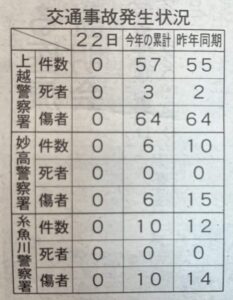 上越市の交通事故発生状況4/22現在